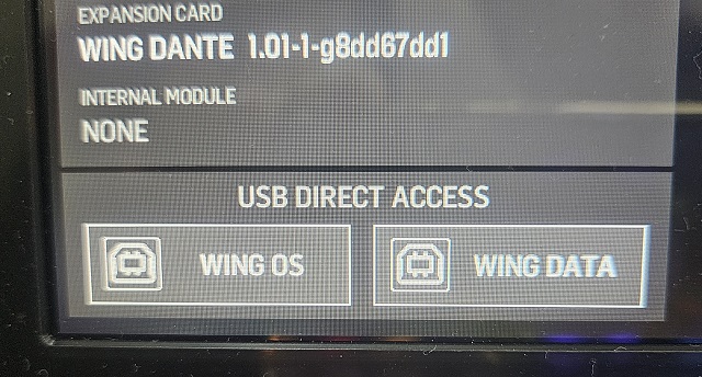 WING-Dante 윙단테 확장카드 펌웨어를 업데이트하지 않고 WING본체 펌웨어를 먼저 업데이트 해버리는 경우 또는 WING본체를 업데이트 완료 후에 WING-Dante 확장카드를 구매해서 설치하는 경우 아래 순서로 조치하면 됩니다.