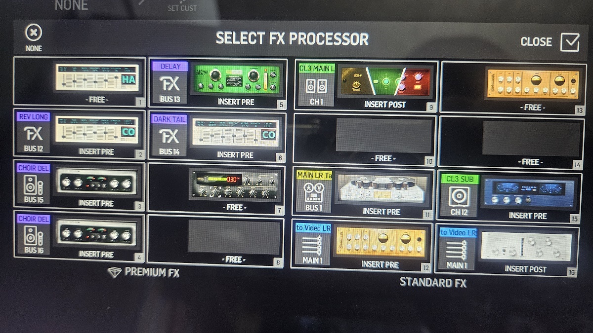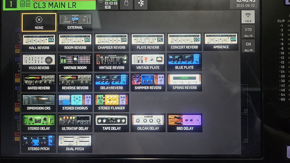 - 이펙트 메뉴 진입: WING 콘솔의 FX 버튼을 눌러 이펙트 메뉴로 이동합니다.