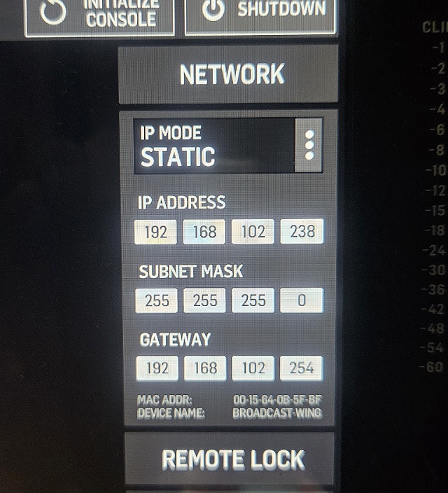 - WING 콘솔에서 SETUP → NETWORK로 이동